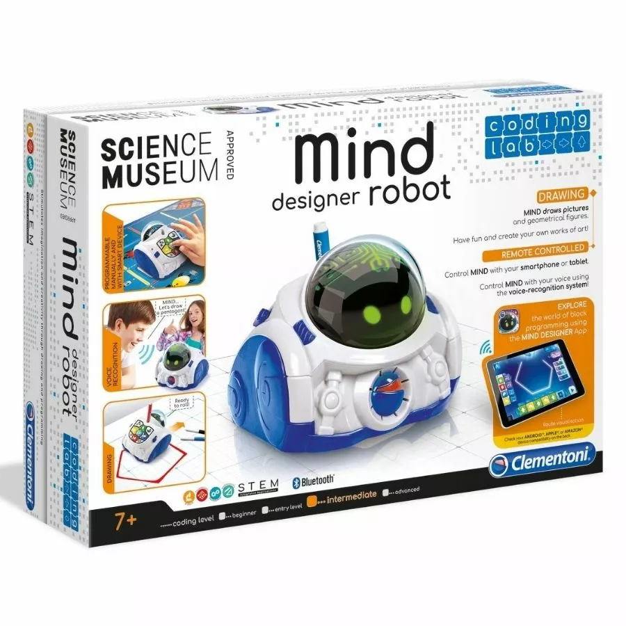 The Mind Designer Robot by Clementoni is an innovative intelligent robot that guides your children through the process of learning mathematics, arithmetic, and geometry following guidelines.
