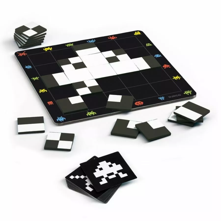 The pixelated aliens and monsters are sure to capture your child’s attention while they put the 25 wooden pieces together.