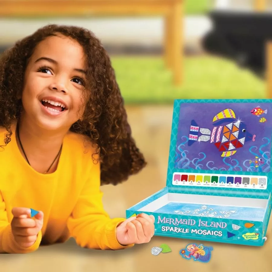 Mermaid Island Shimmery Mosaics is a self-contained set that allows children to create colourful images using magnets on backgrounds.