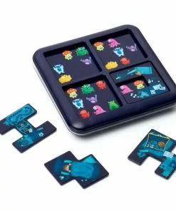 Players are challenged to fill the grid with 10 colourful, double-sided pentomino pieces, leaving X’s and O’s in sequence. Featuring 120 challenges for endless, brain-teasing fun!