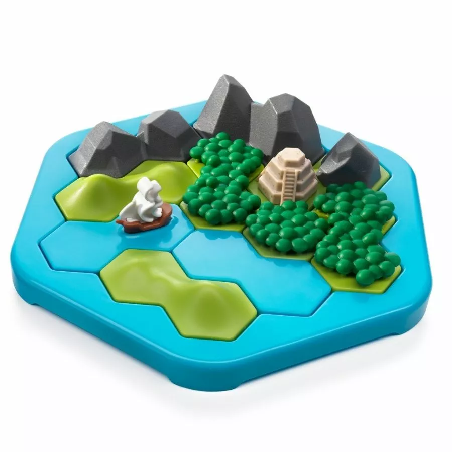 It’s a mystery you’ll never solve! The Smart Games Treasure Island pirate-themed game board is made up of 4 different shaped puzzle pieces. You need to find the right combinations and fit them together to locate the ancient temple. But watch out, they shift! Get too close and they’ll change into something else entirely – an impassable wall or a deadly rock that could ruin your plans in seconds. Do you have what it takes?